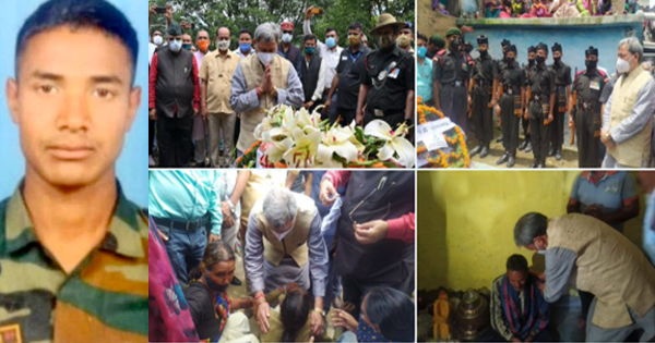 शहीद मनदीप का पार्थिव शव गांव पहुँच गया मुख्यमंत्री ने शहीद सतपुली जाकर उन्हें श्रद्धांजलि अर्पित किया।