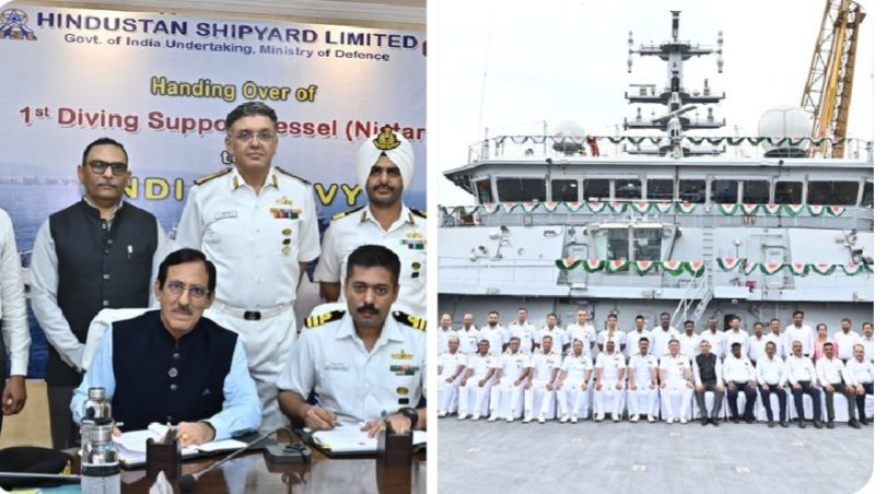 हिंदुस्तान शिपयार्ड लिमिटेड ने स्वदेश निर्मित पहली डाइविंग सपोर्ट वेसल निस्तार मंगलवार को विशाखापत्तनम में भारतीय नौसेना को वापस ले लिया।