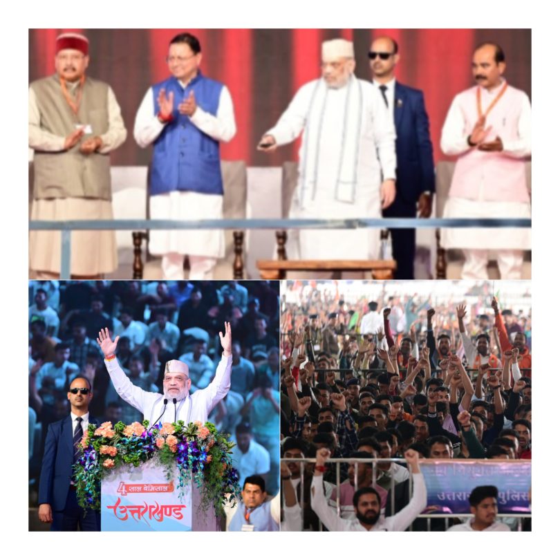 केंद्रीय गृह एवं सहकारिता मंत्री अमित शाह ने शनिवार को हरिद्वार के बैरागी कैम्प में ‘जन जन की सरकार, 4 साल बेमिसाल’ कार्यक्रम में उपस्थित जनसमुदाय को संबोधित किया। उल्लेखनीय है कि उत्तराखंड में भाजपा की 9 साल पूरे होने पर भव्य समारोह का आयोजन किया गया।