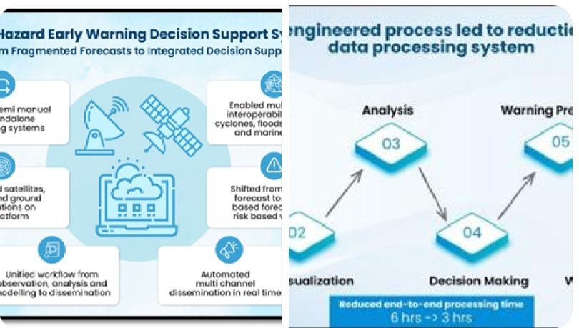बहु-आपदा पूर्व चेतावनी निर्णय समर्थन प्रणाली (एमएचईडबल्यू-डीएसएस) भारत के मौसम पूर्वानुमान और आपदा जोखिम न्यूनीकरण के दृष्टिकोण में एक निर्णायक परिवर्तन का प्रतिनिधित्व करती है। रियल-टाइम अवलोकनों, उन्नत मॉडलिंग, जीआईएस-आधारित विश्लेषण और ढांचागत सूचना प्रसार को एकीकृत करते हुए, यह प्रणाली मौसम और जलवायु संबंधी जानकारी को समय पर ऐहतियाती कार्रवाई में परिवर्तित करती है।